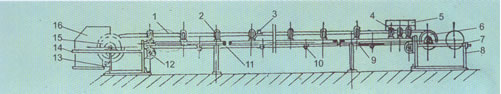 13.彈簧清掃器 14.頭架 15.傳動滾筒(電動滾筒) 16.頭罩